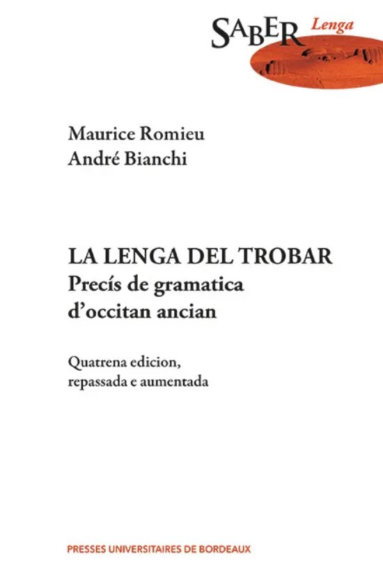 Lo libre publicat per las Premsas Universitàrias de Bordèu, presenta la morfologia nominala e verbala, e la sintaxi de l'occitan ancian. Recampa çò que cal saber per poder legir aisidament los trobadors e los tèxtes de la literatura occitana de l’Edat Mejana.