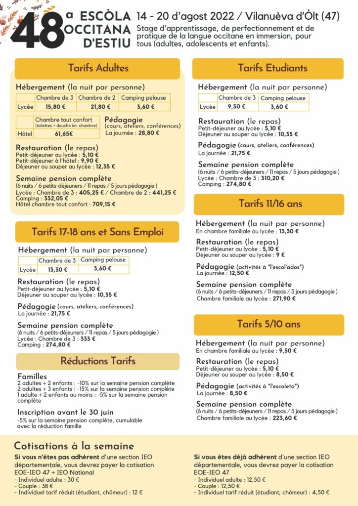 Del 14 al 20 d'agost de 2022 se debanarà a Vilanòva d'Òlt la 48ena Escòla Occitana d'Estiu.