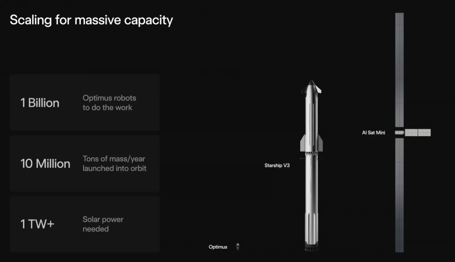 AI Sat Mini versus Starship V3 e robòt Optimus © SpaceX